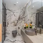المكان يتميز بـ5 غرف نوم. ملحقات الحمام تتضمن المرحاض المنفصل وحوض الاستحمام والدوش.